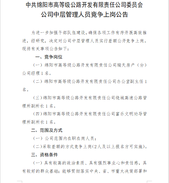 公司中層管理人員競(jìng)爭(zhēng)上崗公告.docx